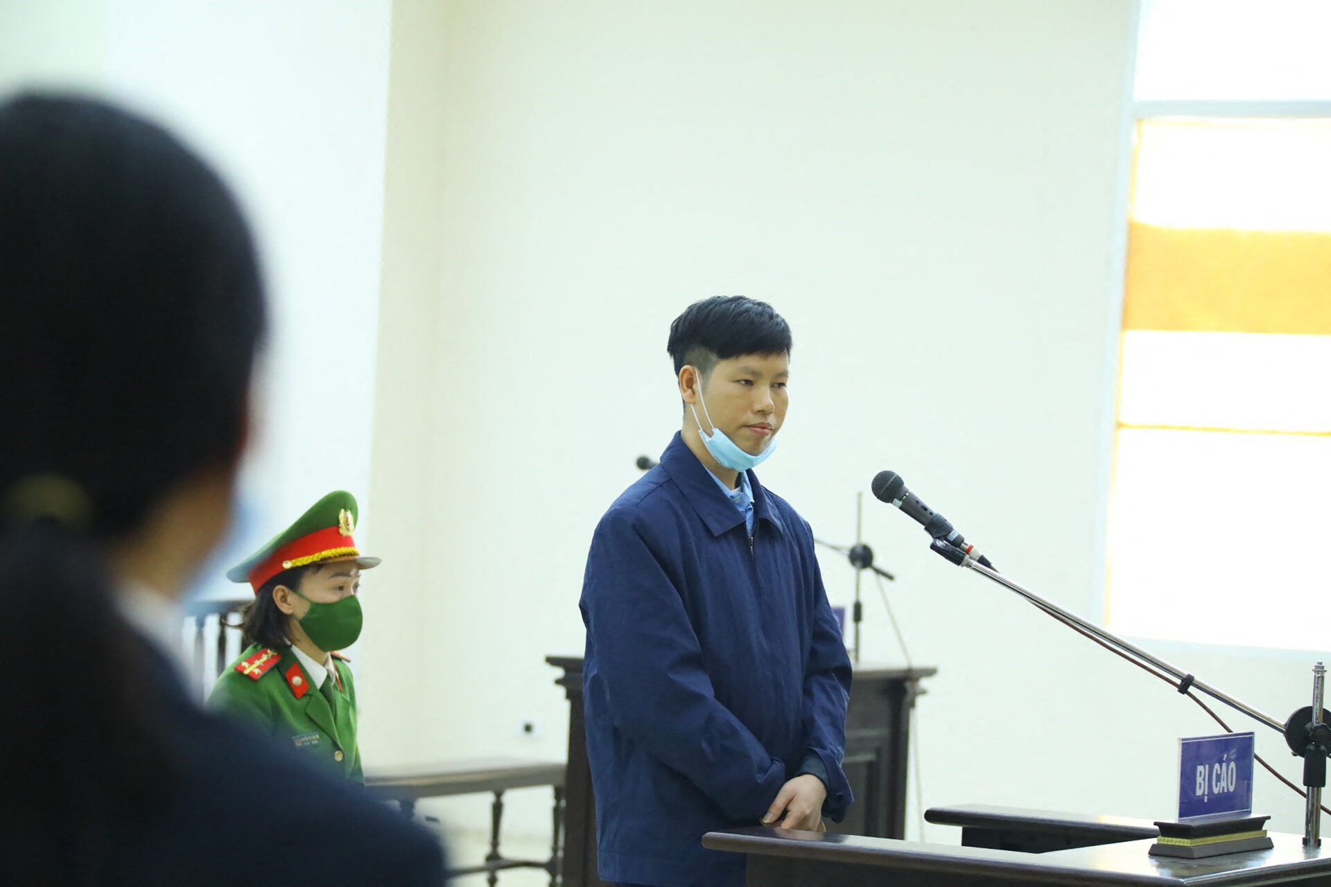 Ông Trịnh Bá Phương ra tòa sơ thẩm ở Hà Nội ngày 15 Tháng Mười Hai 2021. Ông bị kết án 10 năm từ vì bị vu cho tội “Tuyên truyền” chống chế độ độc tài đảng trị tại Việt Nam. (Hình: STR/AFP/Getty Images)