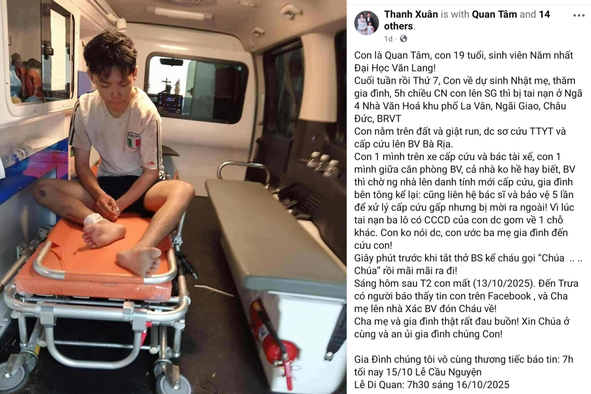 Đến trưa hôm 13 Tháng Mười, cha mẹ anh Tâm thấy tin con trên Facebook nên đến nhà xác của bệnh viện đón về lo hậu sự.