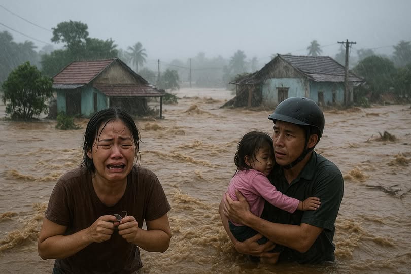 Nước lũ cuộn lên như muốn nuốt trọn tất cả – nhà cửa, ruộng vườn, kỷ niệm và cả hy vọng của bao gia đình.