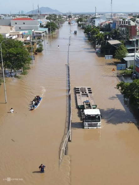 Sáng 5/12/2025, hàng trăm nhà dân tại phường Hàm Thắng (Lâm Đồng) đã chìm trong biển nước do sự kết hợp của mưa lớn, triều cường và việc hồ thủy lợi Sông Quao xả lũ. Khu vực này đã bị ngập nặng trong hai ngày liên tiếp.