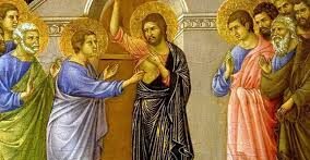 Các môn đệ ở trong một không gian đóng kín – không chỉ cửa đóng, nhưng lòng cũng đóng – một trạng thái hiện sinh: sợ hãi, đứt gãy, thương tích sau thập giá. Nhưng chính ở đó, Đấng Phục Sinh đứng vào giữa; Ngài không xoá các dấu đinh, nhưng giữ lại như một chứng từ, nơi vết thương không còn là thất bại nhưng trở thành nơi mặc khải, nơi con người chạm tới lòng thương xót. Lời mời chạm vào cạnh sườn mở ra một chuyển động: chạm – tin; không phải để kiểm chứng, nhưng để bước vào. Con người hôm nay – vẫn sợ, vẫn nghi ngờ, vẫn còn những vết rạn chảy máu – không cần thoát khỏi vết thương của mình để có thể tin, nhưng được mời ở lại trong đó để tin, tangere ut credere.