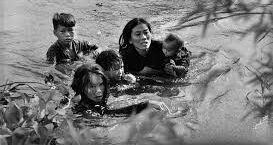 Khoảnh khắc được ghi lại bởi nhiếp ảnh gia Kyoichi Sawada. Ông đã nhìn thấy một cảnh tượng ngoài sức tưởng tượng, một gia đình đang ôm chặt lấy nhau hỗn loạn giữa dòng nước sâu. Bức ảnh cho thấy không vũ khí, không chiến tuyến, chỉ có một người mẹ đang gánh vác cả thế giới của mình cố gắng vượt qua dòng nước và sự bất định. Sau đó, bức ảnh đã giành được giải Ảnh báo chí Thế giới của Năm, trở thành một trong những hình ảnh mạnh mẽ nhất thời điểm đó.