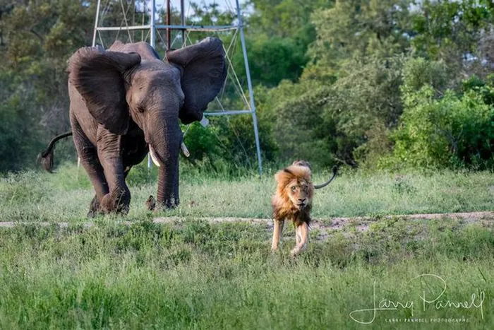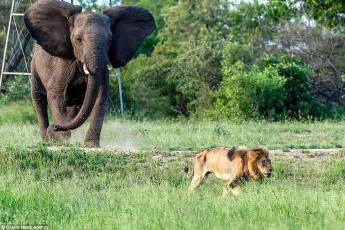 Nhưng không may, con voi vẫn tìm thấy nó, lùi lại và lao về phía Scar với một tiếng gầm, khi những con voi khác nghe thấy tiếng động, chúng bắt đầu lao về phía con sư tử già.