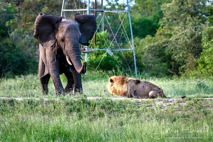 Nhưng ngay sau lúc đó, một đàn voi đã đến vũng nước để vui đùa và thỏa mãn cơn khát của mình, một con voi đã bỏ đàn voi đi về phía khu đất cao, dường như muốn đứng ở vị trí cao hơn để xem xung quanh có nguy hiểm gì không. Lúc đầu, nó không phát hiện ra sư tử Scar ở cách đó 30 mét, và Scar cố tình tránh tầm nhìn để tránh con voi phát hiện ra mình.