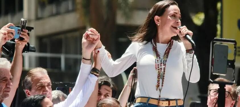 Năm 2023, bà tuyên bố tranh cử tổng thống cho kỳ bầu cử năm 2024, nhưng bị chính quyền cấm tham gia. Thay vì rút lui, bà ủng hộ ứng viên thay thế Edmundo González Urrutia, giúp phe đối lập duy trì sự đoàn kết và tiếp tục cuộc vận động dân chủ. Dù chính quyền tuyên bố chiến thắng, phe đối lập đã thu thập bằng chứng cho thấy kết quả bị thao túng, và bà Machado vẫn kiên trì ở lại trong nước, bất chấp các mối đe dọa đến tính mạng.