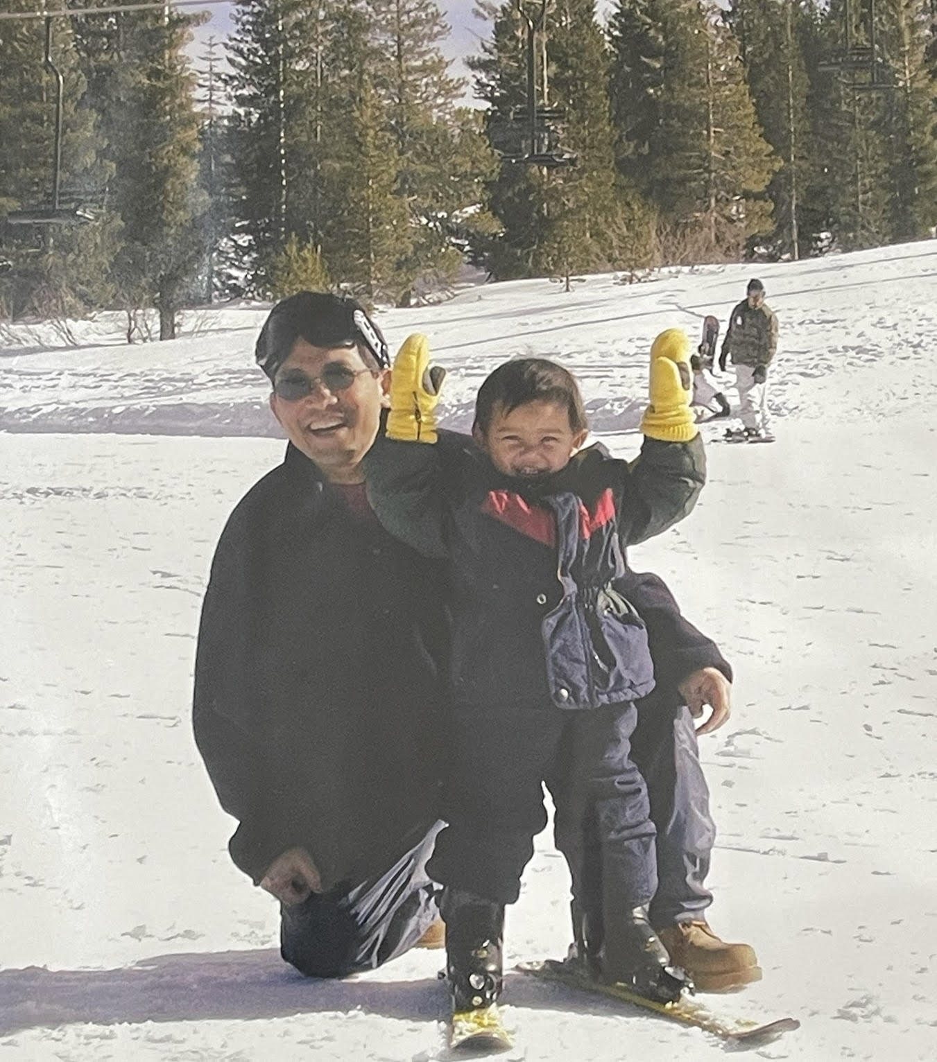 Gabriela Nguyễn hồi còn nhỏ cùng với cha ở Boreal Mountain, California, năm 2004. (Hình: Gabriela Nguyễn cung cấp)