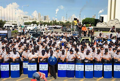 Hình 4: Cảnh sát bảo vệ cổng nhà máy NC số 6 tại Mạch Liêu.