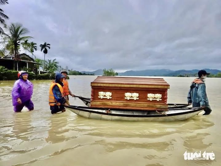 Cuộc chia ly đầy nước mắt trong mênh mông biển nước! Người dân vùng rốn lũ xã Hòa Thịnh, Đắk Lắk (tỉnh Phú Yên cũ) lưu luyến tiễn đưa người thân không may qua đời giữa những ngày mưa lũ…