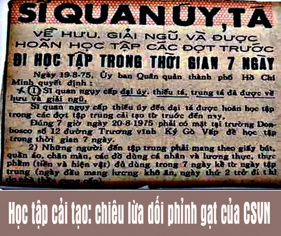 Tháng 06 năm 1975, nghe theo thông báo của Ủy Ban Quân Quản thành phố Sài Gòn, cấp tá quân đội, hành chánh cấp Phó Quận, Chánh Sự Vụ trở lên, đảng phái cấp phó bí thơ quận trở lên, đem thức ăn, mùng mền đi trong một tháng. Đóng 13,000 đồng tiền Việt Nam Cộng Hòa (gần nửa tháng lương) để đi tù.