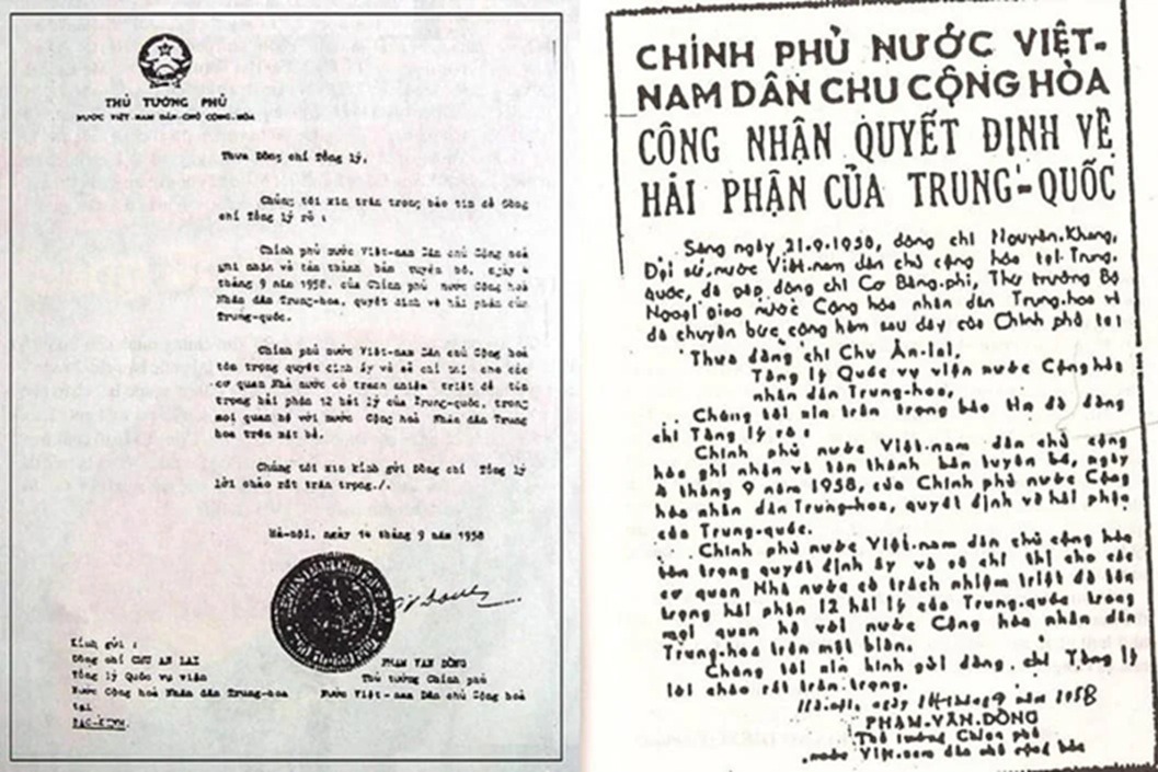Công hàm Phạm Văn Đồng ký năm 1958. Ảnh trên mạng