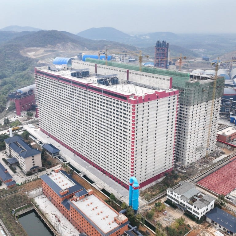 Hai tòa nhà cao tầng này ở Ezhou, tỉnh Hồ Bắc, sẽ có thể sản xuất 1,2 triệu con lợn trưởng thành hoàn toàn mỗi năm khi hoạt động đầy đủ. Ảnh: Tân Hoa Xã