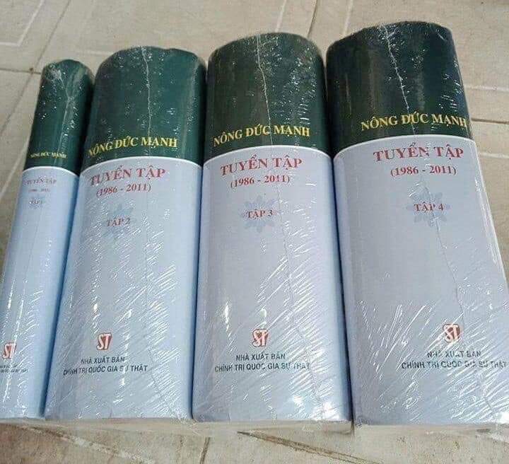 Vừa rồi trên mạng xuất hiện một bộ sách có tựa đề “Nông Đức Mạnh – Tuyển tập (1986-2011)”. Bộ sách này cỡ khổ giấy A4. Bộ này có 4 cuốn, trong đó có 3 cuốn dày cỡ 10cm và 1 cuốn mỏng hơn, khoảng cỡ 4cm. Bộ sách vừa xuất hiện lập tức thiên hạ bàn tán xôn xao. Ngồi cà phê, thằng bạn mở hình trên smartphone và chìa hình 4 tập sách ấy cho tôi xem, hắn vừa mỉm vừa nói “Mầy xem này! Cộng Sản cho trâu đực đẻ con nè!”. Tôi cũng cười, vì thấy hắn nói vừa đúng, vừa thâm và vừa khôi hài.