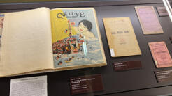 Những tác phẩm này nằm được đặt trong tủ kính, ngay lối đi chính ở tầng trệt của thư viện để mọi độc giả có thể ngắm. Chị Nguyễn Thị Hải, phụ trách phông tiếng Việt và triển lãm, giới thiệu :