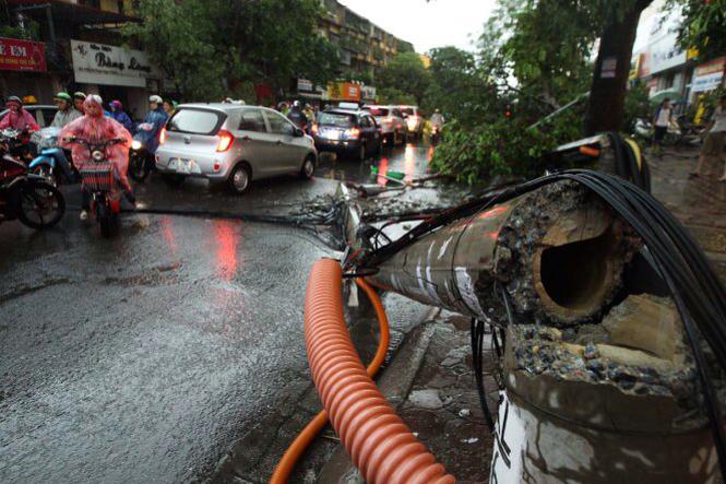 2. Không chỉ cây đổ mà còn một loạt cột điện, cột đèn, biển quáng cáo các cỡ các loại, mái nhà, thậm chí móng nhà bị đổ, bị đứt, bị bật, gây nguy hiểm đến tính mạng, sức khoẻ người đi đường và chung quanh không kém thậm chí còn hại hơn so với cây đổ.