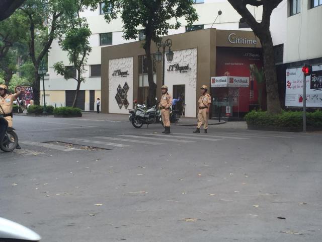 Quanh Hồ Gươm, vườn hoa Lý Thái Tổ, Nhà hát lớn…, là hàng ngàn an ninh và dân phòng chìm nổi, dùi cui trên tay. Đường vào Nhà hát lớn bị chặn.
